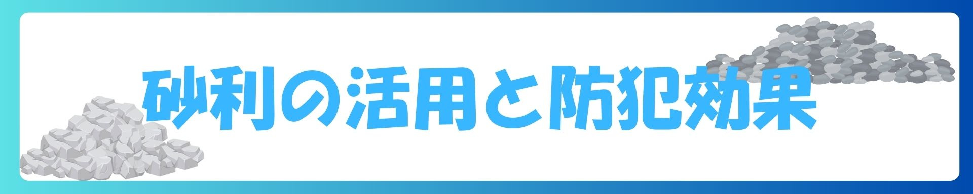 砂利は歩くと「ジャリジャリ」と音が鳴るため、静かに侵入しようとする泥棒や不審者にとって大きな障害となります。特に深夜や人気のない時間帯では、この音が周囲に響きやすく、不審者の警戒心を高めます。また、砂利を敷くことで、防犯対策に積極的である印象を与え、不審者が空き家と認識しにくくなる利点もあります。